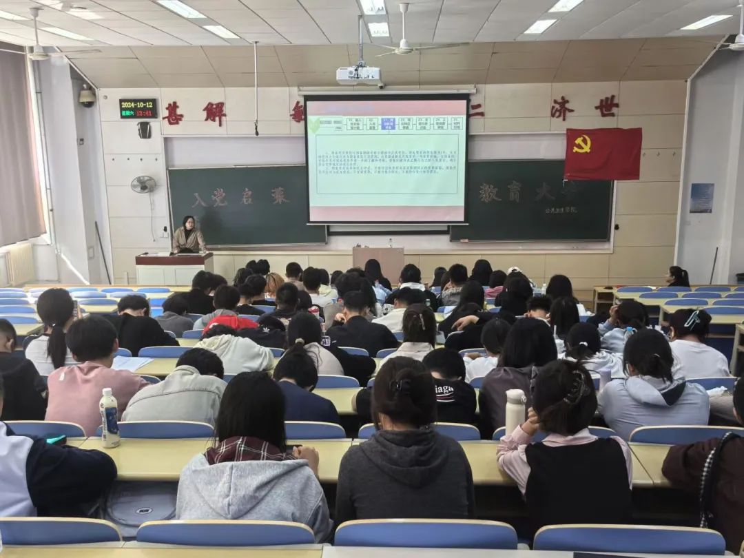 组织员吴寒向大家详细介绍了发展党员的基本要求、基本流程和常见问题,鼓励同学们积极响应党的号召,紧跟党的步伐,学习党的路线方针政策,提升自身思想觉悟和理论水平,以实际行动向党组织靠拢。