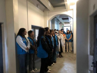 同学们在讲解员的带领下参观了旅顺日俄监狱旧址。走进旅顺日俄监狱旧址博物馆,首先映入眼帘的是一堵堵高墙和挂着各色囚服的检身室,阴暗的刑讯室、绞刑室以及狭窄的监狱走廊,让人感受到历史的沉重。一间间阴暗潮湿的牢房、一副副冰冷的镣铐、一条条吞噬过无数抗日志士和爱国同胞生命的绞索,讲述着中华民族苦难的泪、不屈的血和抗争的火。同学们在参观过程中都保持缄默,怀着悲痛的心情听讲解员诉说英烈们的斗争故事。