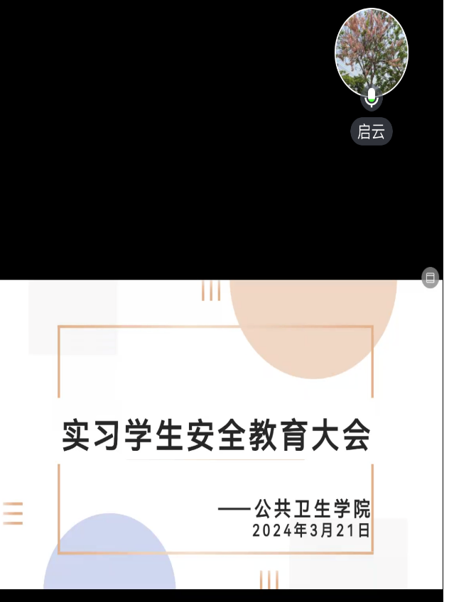 大会由辅导员王启云老师担任主讲。会议主要围绕寝室消防安全问题、实习路上交通安全问题、考研复试同学请假及离校注意事项和安全问题三个方面展开。一是寝室消防安全问题。王老师强调了用电安全的重要性,要求同学们严格遵守学生公寓管理相关规定,不得违规使用电器、酒精炉等有消防安全隐患的器具,对自己和同学的安全负责。二是实习路上交通安全问题。王老师通过举例说明,从多个方面、多个角度叮嘱同学们增强自我保护意识。三是考研复试同学请假及离校注意事项和安全问题。王老师对考研复试流程进行简单介绍,并提醒同学们注意学校相关通知,及时做好请假准备,提醒同学们增强自我保护意识,合理规划复试行程,往返行程注意安全。