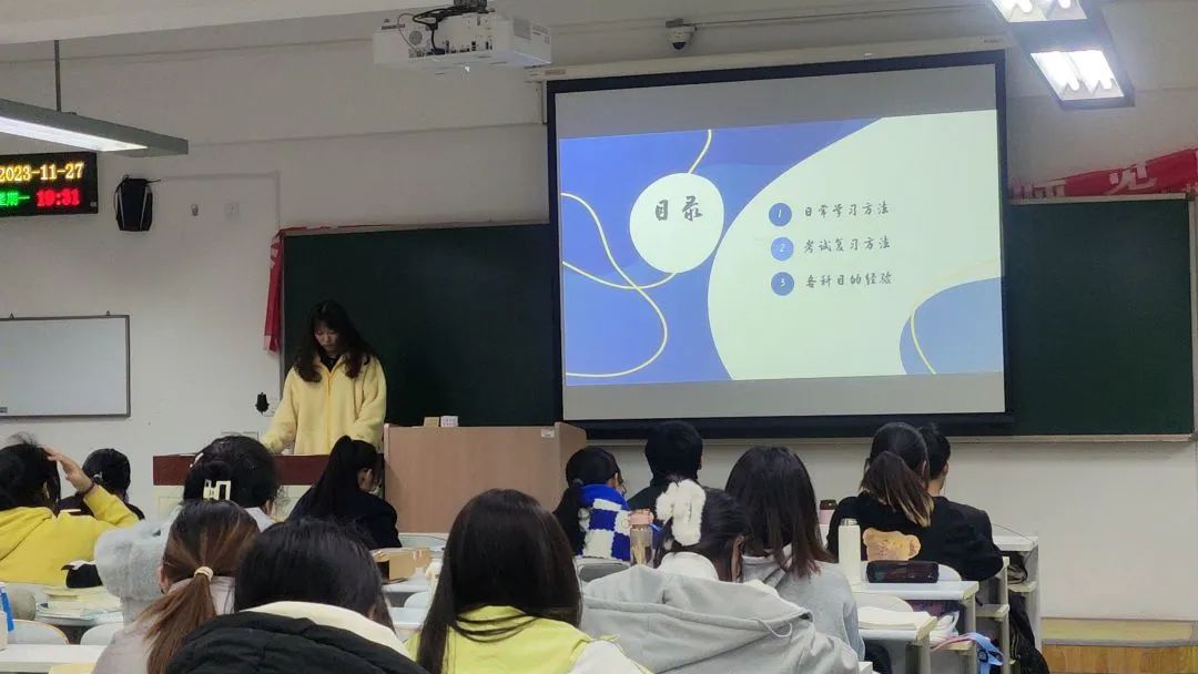 本次学习经验分享交流会由学习部主持。首先,各位2021级优胜学生代表分别结合自身的复习规划与学习安排,讲解了日常学习方法、高效复习方法以及学习资源的利用等;其次,对考试的题型进行了细致的讲解与分析,针对不同科目的知识点进行了简单梳理;最后,学姐们向22级同学分享了往年复习资料,为同学们答疑解惑,同时也祝贺大家期末高过。在愉快的氛围中,本次学习经验分享交流会圆满结束。