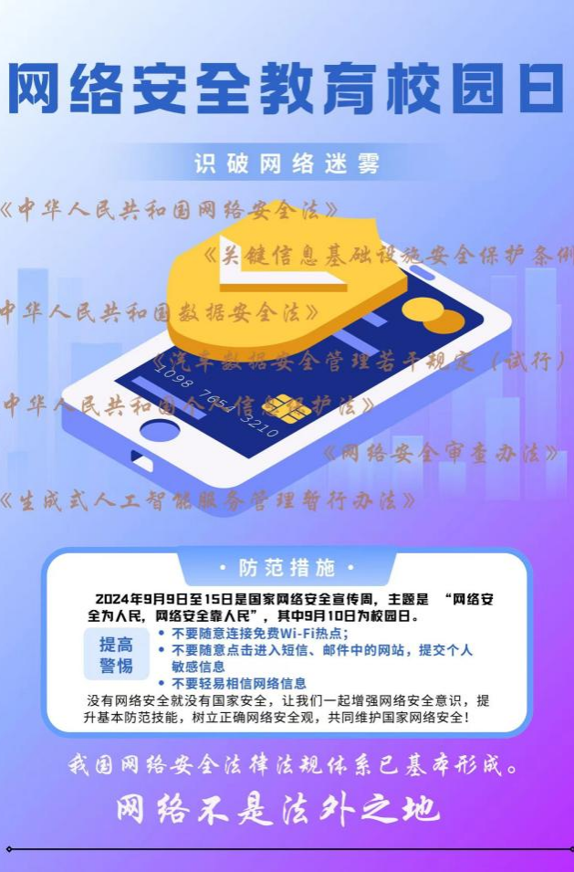 本次活动由学生综合事务办公室主办。活动以提升同学们网络安全意识为主要目的,旨在营造学院内良好的网络安全氛围,共同构筑国家网络安全防线。活动采用线上形式进行,同学们需将海报作品以照片形式发送至负责人的邮箱,由工作人员负责统计评选。通过参与此次活动,同学们学习了网络安全知识,增强了网络安全意识,提升了基本防范技能,并树立正确网络安全观。在同学们的积极响应、认真参与下,此次活动圆满结束。