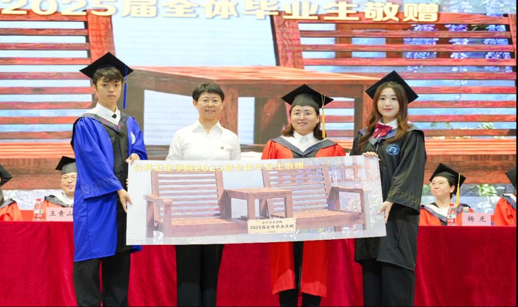 孙鲜策代表学院向圆满完成学业的毕业生致以热烈祝贺,并分享了自己求学时的难忘片段,以此引出对青春感悟的思考。她以三条成长路径寄语毕业生:一是“向上生长”,勉励同学们坚守科学精神、勇于推倒重来,以热爱与担当面对挑战,在顺逆之境中保持良知与尊严;二是“向下扎根”,强调公卫人的价值在于立足人民需求、扎根平凡岗位,无论身处实验室或基层,都应如疫苗般无声守护,永葆服务健康事业的初心;三是“归家之路”,提醒毕业生珍视家庭,承担起为人子女、伴侣与父母的责任,让爱成为前行的力量与归航的港湾。最后,院长深情祝福毕业生心途坦荡、执着追光,前程锦绣、幸福安康,脚下有路、心中有光。
