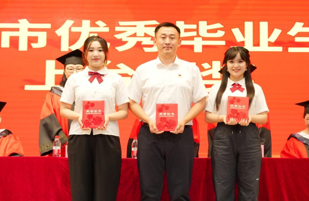 学院领导为2025届省、市、校优秀毕业生代表颁奖。