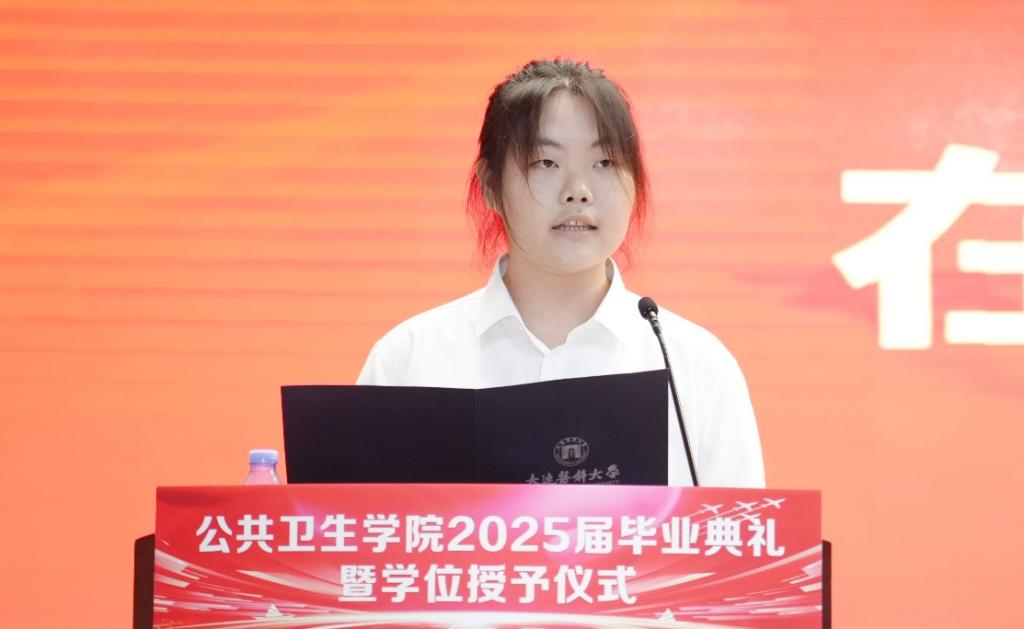研究生毕业生代表李浩淼、本科生毕业生代表陈婧怡和在校生代表李佳凝分别进行了发言。