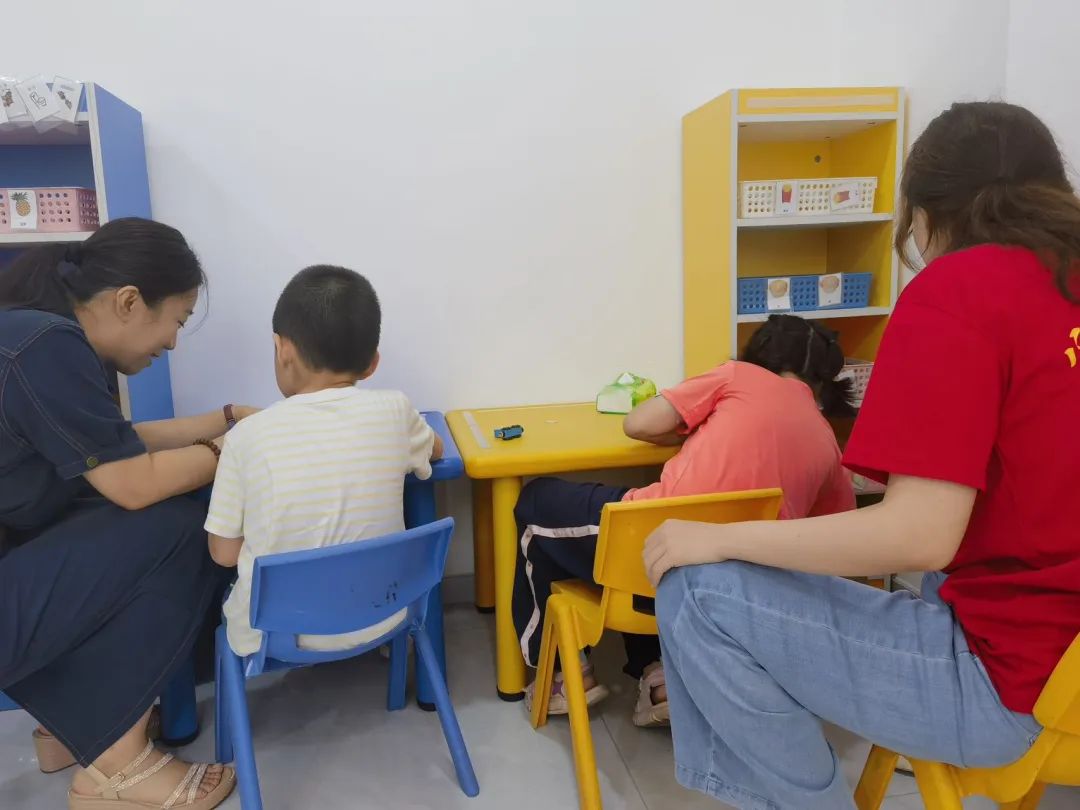 在志愿活动正式开始之前,各位志愿者积极查阅资料了解自闭症相关科普知识,纷纷表达了对志愿活动的期待,希望能通过自己的爱心来帮助和温暖这些“星星的孩子”。8月2日下午,队内的五位同学在辅导员边晓飞老师的带领下化身“影子老师”,与小朋友们度过了一段难忘的时光。在康复中心老师的带领下,学院的师生志愿者们来到了不同的班级,辅助小朋友们完成课堂任务。活动过程中,志愿者们细心、耐心地与小朋友们交流,并且一对一的帮助小朋友们进行思维训练、感知训练等,在这个过程中,大家与小朋友们逐渐地熟悉起来。在课间与老师、家长交流的过程中了解到,星星的孩子在孕期通常无法被诊断出来,且最好的干预结果是各项能力接近正常人。家长们从来没有放弃过给孩子治疗,也由衷地感激社会上越来越多的组织与志愿者看到了他们这个特殊的群体,也有越来越多的专业人员为他们提供帮助。在活动结束后,师生志愿者与小朋友们拥抱告别,学院也与小海豚自闭症康复中心建立了长期联系,未来,学院越来越多的同学们会用自己的爱心与所学的专业医疗知识为老师们、孩子们提供帮助。