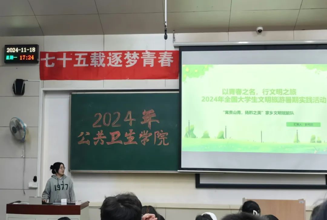 为培养同学们的社会责任感和担当意识,进一步将个人能力与社会需要紧密结合。德赢ac米兰官方合作于2024年11月18日举办“七十五载逐梦青春,万千跬步践悟征程”2024年暑期社会实践成果展活动。两位辅导员老师,学院学生会各部门负责人及德赢ac米兰官方合作2023、2024级全体同学参加了本次活动。