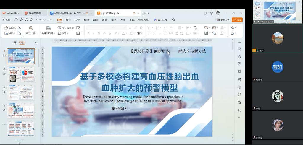 大赛自2023年起被正式纳入“全国普通高校大学生竞赛分析报告”目录,已成为展示全球医学青年创新成果和跨学术交流的重要平台。为备战此次高水平赛事,学院高度重视,提前谋划,依托“本科生导师团队制”深入开展项目孵化。在整个备赛过程中,学院多次组织系统化训练,特邀校内外多位专家评委组成指导团,针对项目创新性、科学性与可行性提出修改意见,并在语言表达、学术逻辑和答辩流程等方面进行了多轮深度打磨与反复推演。