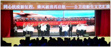 随后,学院举办了“同心抗疫新征程•乘风破浪再起航”主题迎新晚会,同学们通过《抗疫,我们在一起》情景剧、《最美的温暖》合唱等文艺节目致敬战疫英雄,展示青年一代不怕苦、不畏难、不惧牺牲,勇担重担的赤子底色。