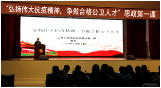 姜平从“壮丽逆行,攻坚克难,‘抗疫精神’熠熠生辉”、“‘不忘初心、牢记使命’,在战疫中锤炼党性”、“党建引领,群防群治,基层党组织在战疫中勇担重任”和“发扬‘抗疫精神’,为实现中华民族伟大复兴而努力奋斗”四个方面进行了细致阐述。列举了我国在抗击疫情过程中的伟大成果和德赢官网援颚医疗队决胜雷神山的无畏无惧,致敬一往无前、默默奉献的英雄们,讲述了共产党人以人民为中心的初心使命,鼓励全体公卫学子传承弘扬伟大抗疫精神,学好专业本领,树立远大理想,听党话,跟党走,努力成长为符合新时代要求的合格公卫人才,为我国的公共卫生事业发展贡献力量。