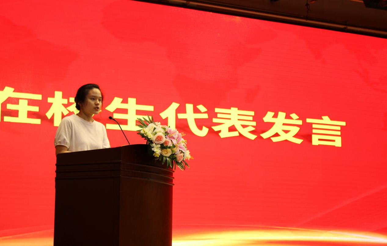 在校生代表卢飞羽同学作为在校生代表上台发言,祝愿即将毕业的学姐学长们秉持大医精神,乘时代东风,不断进取,鹏程万里。