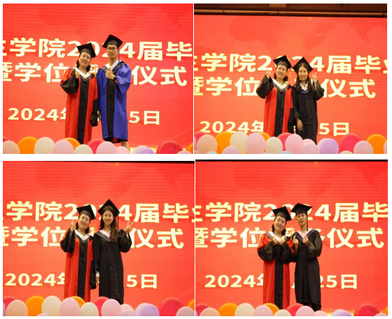 典礼结束,2024届全体毕业生与学院领导、学位评定委员会成员及老师们进行合影留念,同时,毕业生们逐个上台和孙鲜策进行了单独合影留念。