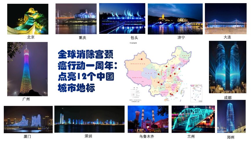 本活动由世界卫生组织发起,北京协和医学院群医学及德赢ac米兰官方合作主办,活动主题为:消除宫颈癌,中国在行动,活动在北京、深圳、广州、成都、重庆、济宁、兰州、厦门、大连、包头、乌鲁木齐等十二个城市展开。本次活动分为日间公益宣传活动和夜间点亮地标活动两部分。日间公益活动包括科普讲座、迷你马拉松、摄影作品征集、海报征集、健康咨询等;夜间点亮地标活动分别在北京国家大剧院、深圳京基100、广州塔、成都环球中心、大连星海跨海大桥、重庆人民大剧院、济宁尼山圣境、郑州千玺广场大玉米、包头市博物馆、厦门月光环、乌鲁木齐大巴扎、兰州中山铁桥开展。