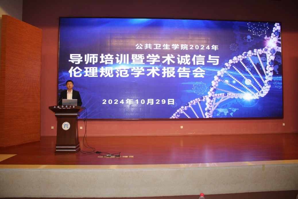 10月29日下午,德赢ac米兰官方合作在德赢winac米兰图书馆一楼学术报告厅举办2024年导师培训会暨学术诚信与伦理规范学术报告会。会议邀请德赢winac米兰学术道德委员会委员、肿瘤干细胞研究院雷海新教授作了题为《学术诚信与伦理规范》的学术报告。德赢ac米兰官方合作院长孙鲜策,党总支书记于泳,副院长陈欣,研究生辅导员石伟涛,学科与科研办公室张昊,全体导师和研究生以线下线上相结合的方式参加了报告会。会议由孙鲜策主持。