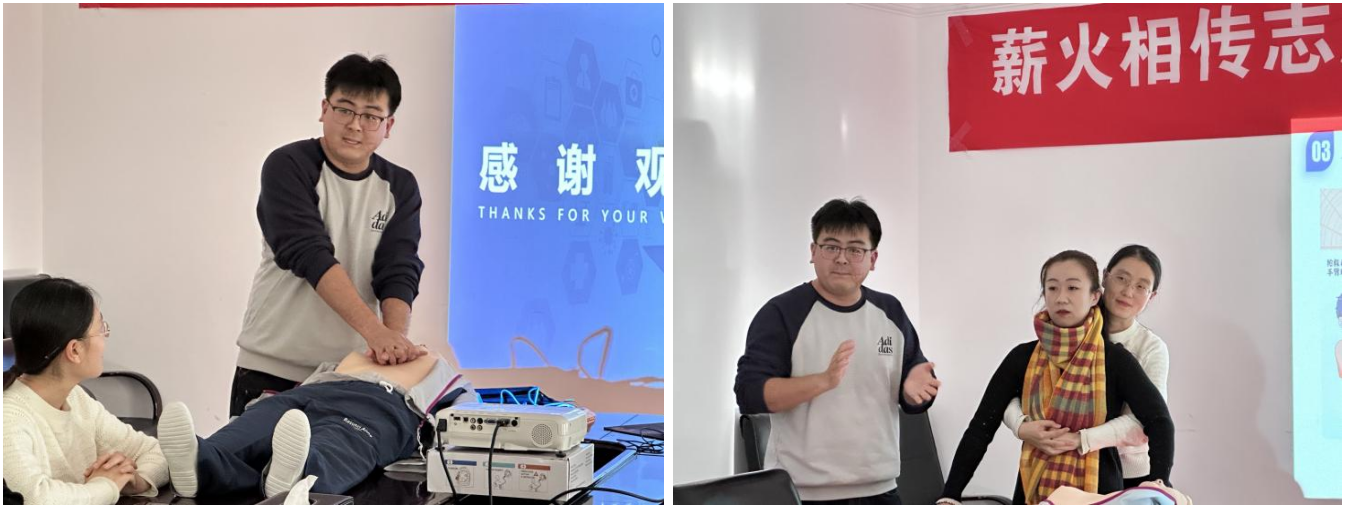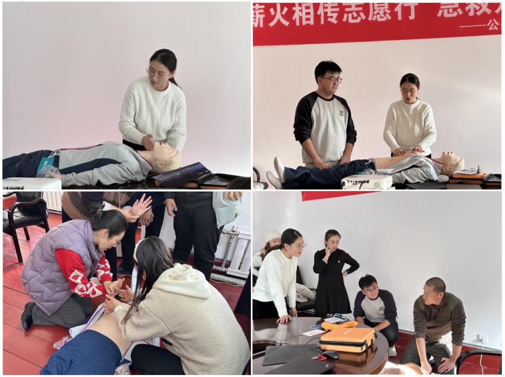 王启云老师进行了现场示范演示。她边操作边讲解,从按压的位置、力度到呼吸的配合,每一个细节都一一展示,让大家更加直观地了解了心肺复苏术的正确操作方法。示范演示结束后,参与培训人员积极动手实践,按照所学知识和示范进行操作,相互交流、相互学习,现场气氛热烈。