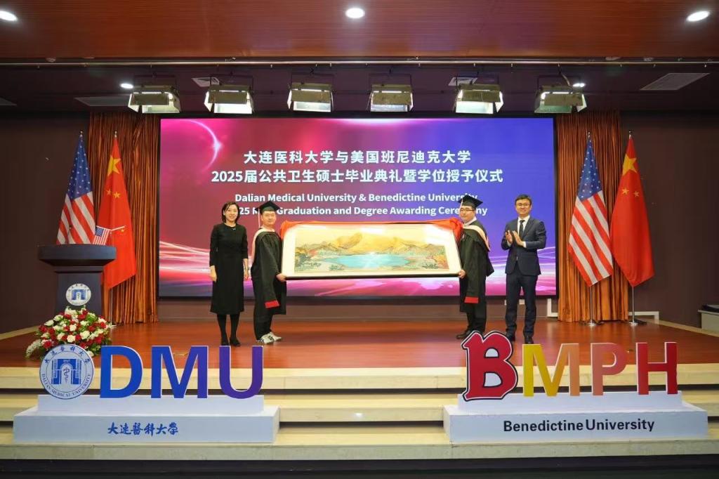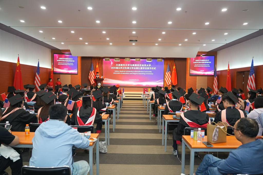 5月24日,德赢官网与美国班尼迪克大学2025届公共卫生硕士毕业典礼暨学位授予仪式隆重举行。经过两年的辛勤学习,78名毕业生顺利获得美国班尼迪克大学硕士学位。美国班尼迪克大学校长Joseph J. Foy博士亲赴德赢官网参加毕业典礼。德赢官网副校长邵淑娟、德赢ac米兰官方合作院长孙鲜策、国际教育学院副院长高鹏、德赢ac米兰官方合作副院长陈欣、中美合作MPH项目的授课教师、教学督导代表和毕业生等共同出席本次典礼。典礼由孙鲜策主持。