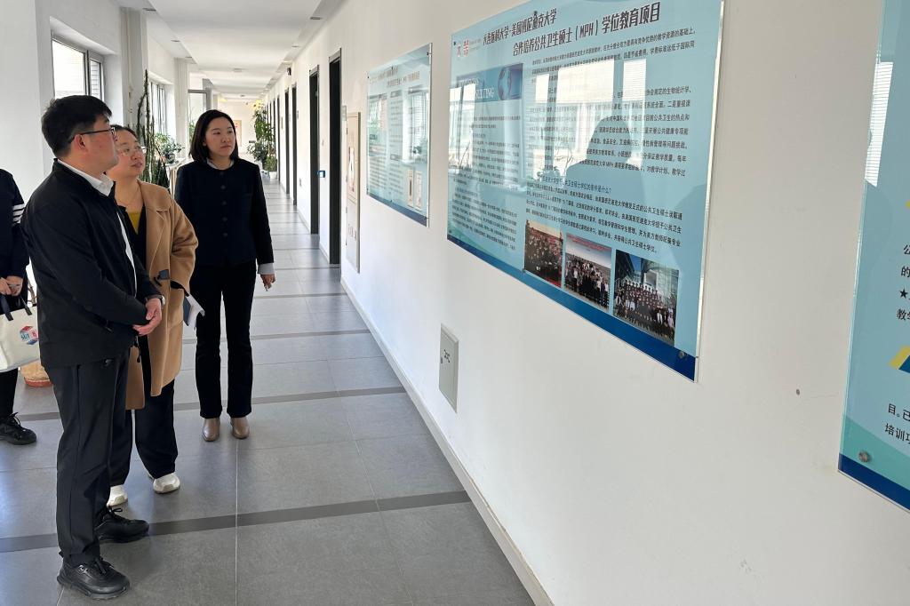 徐岩一行在陈欣的陪同下参观了德赢ac米兰官方合作,深入了解了学院的历史沿革、学科建设情况以及近年来学院在教育教学、科学研究等方面取得的突出成就。特别是在中美合作MPH项目展示区,陈欣重点介绍了该项目的办学特色、人才培养模式创新以及在国际化公共卫生人才培养方面所取得的显著成效。