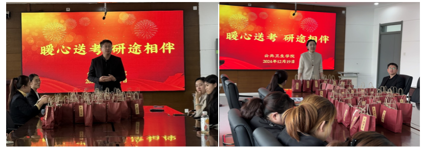 于泳书记强调了坚定信念和诚信考试的重要性。他鼓励大家在备考决胜日这两天合理调节心理状态,以积极乐观的心态投入复习,克服焦虑情绪的干扰,同时提醒同学们,在努力学习的过程中,切不可忽视身体健康,做好保暖防护措施,避免感冒等疾病的乘虚而入,确保以最佳的身心状态迎接考试。陈欣副院长以自身经历向同学们分享了考研不仅是一场知识的较量,更是意志和心态的考验。她提醒同学们要合理安排时间,保持良好的作息,以充沛的精力和稳定的心态迎接考试。