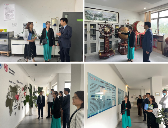 会见结束后,Katherine Lang博士在德赢官网德赢ac米兰官方合作领导的陪同下参观了德赢ac米兰官方合作,深入了解了德赢官网在公共卫生教学与科研方面的发展和成果。孙鲜策院长首先向Katherine Lang博士介绍了学院发展概况,并领其参观了学院教研室和实验室;随后,孙院长介绍了中美合作MPH项目的发展历程,并展示了往届中美合作MPH项目毕业生向学院的赠礼。Katherine Lang博士对完善的教学设施、科研环境表示赞赏,并期待未来有更多的合作机会,共同推动公共卫生教育的国际化发展。