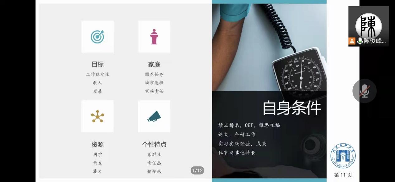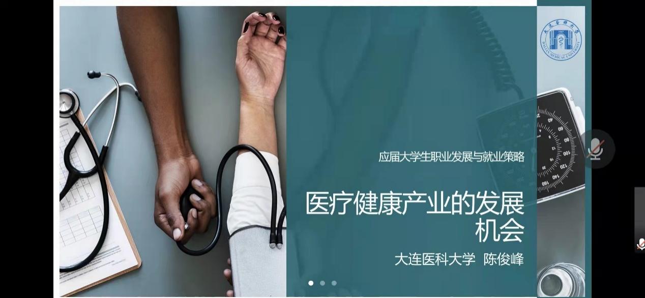 为了帮助应届毕业生了解专业发展与就业策略,德赢ac米兰官方合作于4月9日邀请社会医学教研室陈俊峰教授开展了以《医疗健康产业的发展机会》为主题的线上讲座。学院辅导员老师边晓飞、2022届毕业生及部分在校生参加了本次讲座。