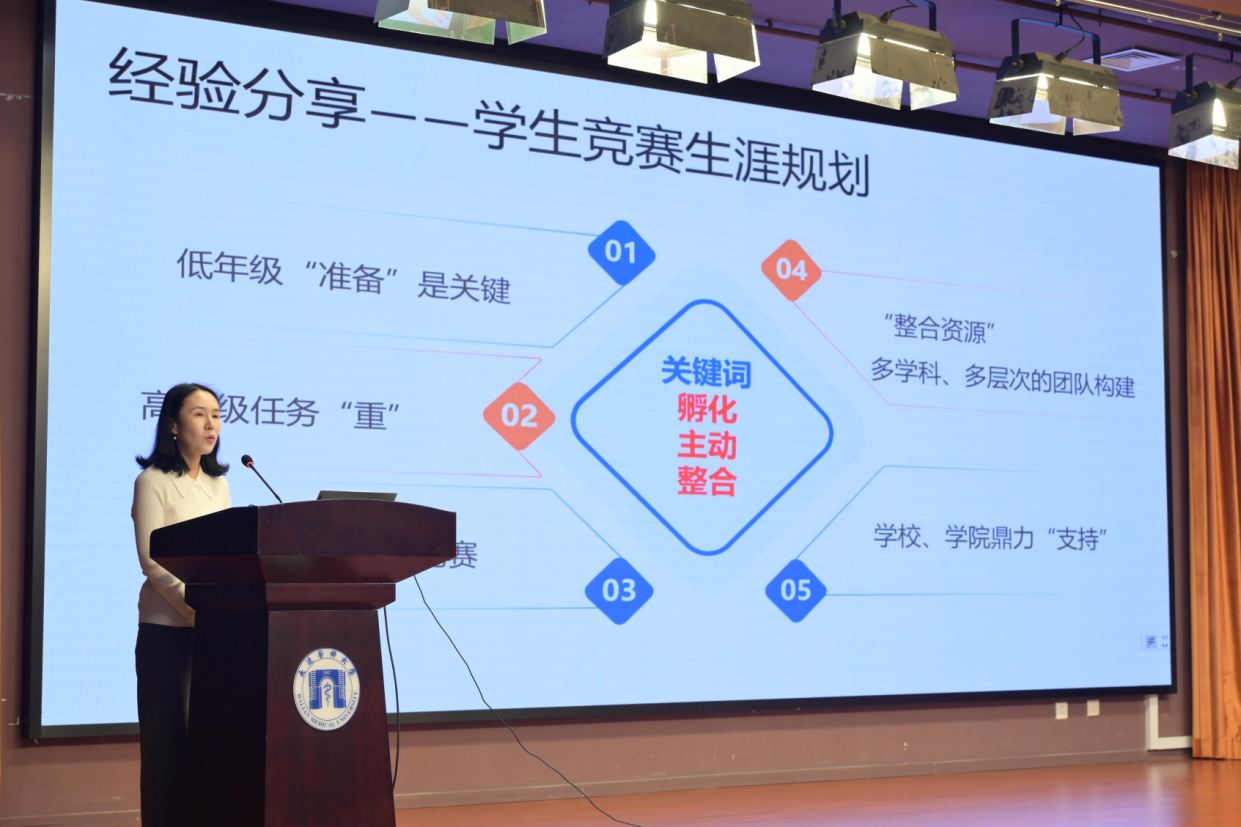 随后,优秀指导教师代表代馨分享了指导过程中的心得与方法。她表示,学校和学院在大学生创新创业方面给予了相当大的支持,老师和同学做竞赛规划时要注重主动参与、从低年级准备、关注新赛,才能冲出重围,取得更好的成绩。