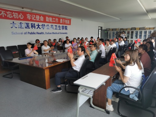 观看庆祝中国共产党成立100周年大会直播时,全体党员凝神聚气,与天安门前广大参会人员一起肃立,共同奏唱了《中华人民共和国国歌》,认真听取了各民主党派、工商联和无党派人士的联合致贺词以及共青团员和少先队员代表的集体致献词,聆听了习近平总书记发表的重要讲话。