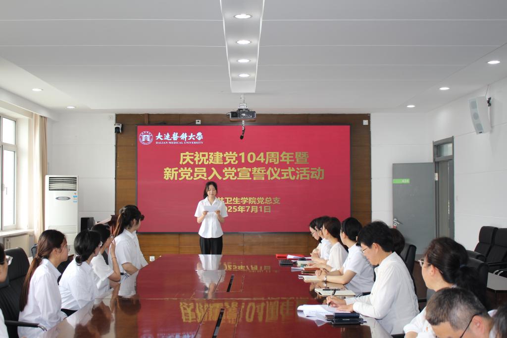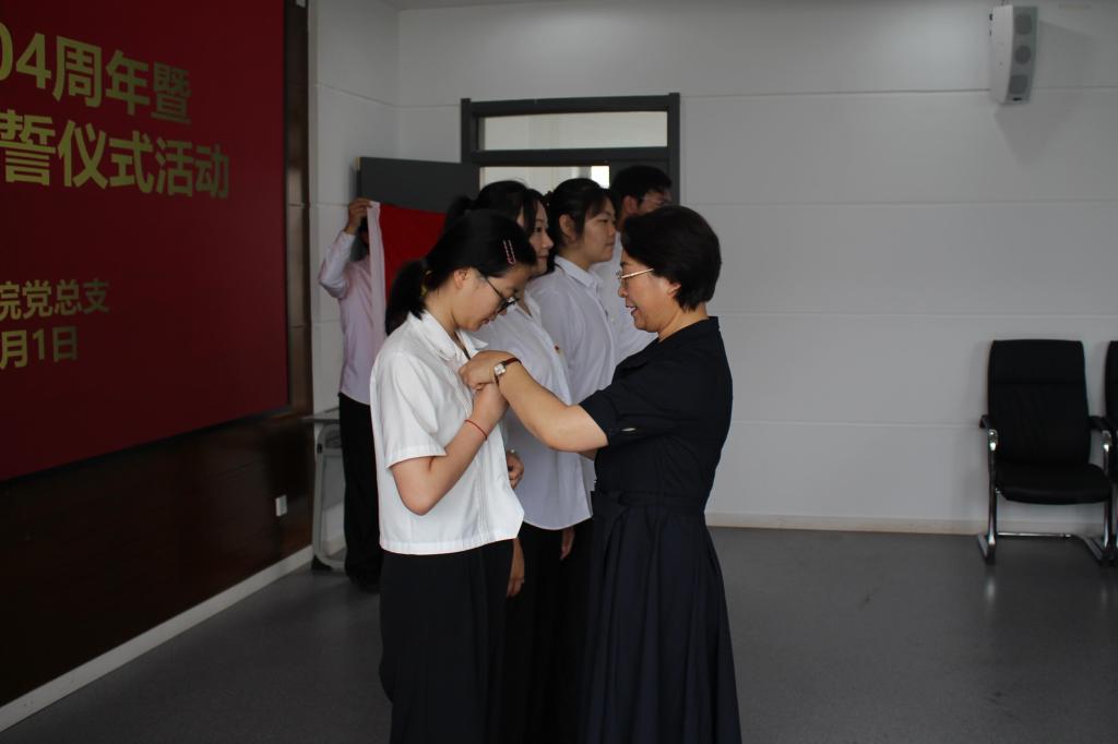 为庆祝中国共产党成立104周年,强化对新发展党员的党性教育,引导他们牢记入党初心使命,坚定理想信念,7月1日,德赢ac米兰官方合作党总支在学院424会议室举办新党员入党宣誓仪式。党委常委、副校长杨晓丽受邀参会,学院党总支书记金新、副院长陈欣、党支部书记、新发展党员和部分入党积极分子参加活动。